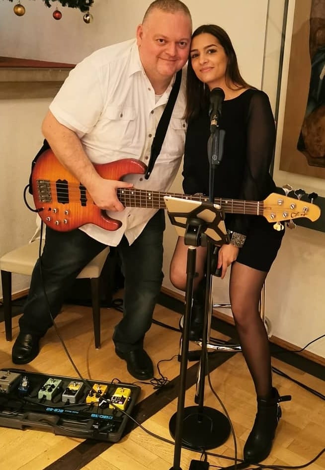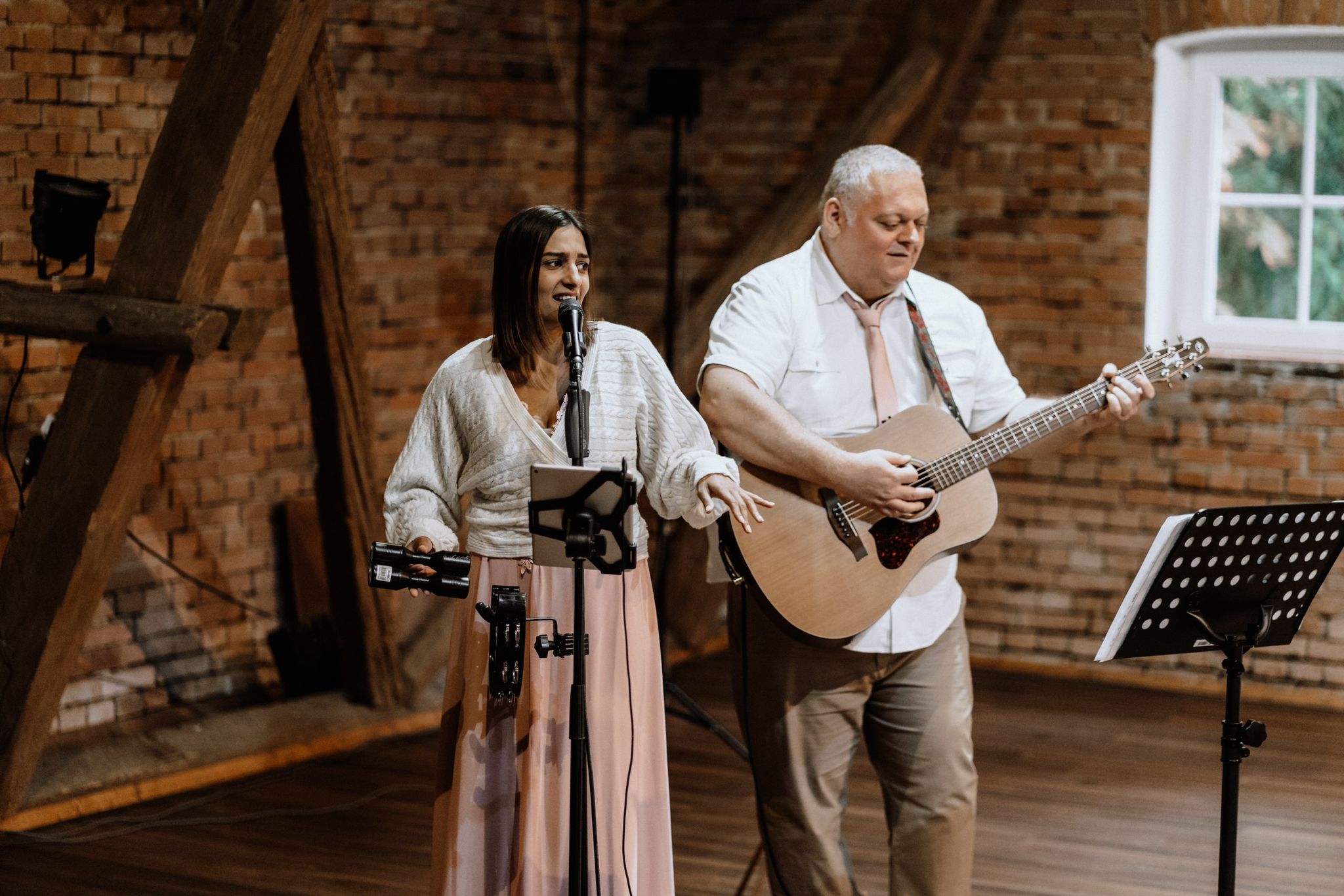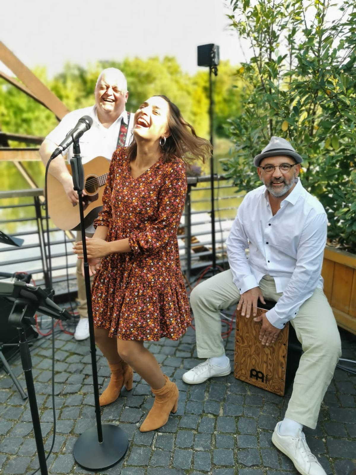 Hochzeitssängerin mit Akustik-Gitarrist und mit Percussion